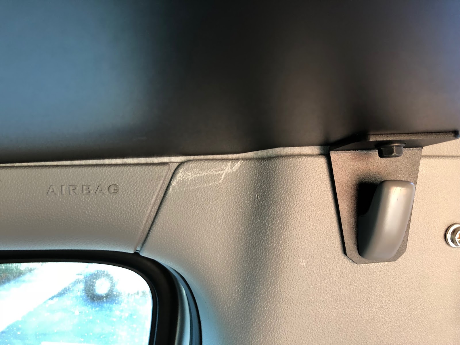The pinch bracket holds up the entire front of the headliner, and it vexed me. Based on the way it is built, it seems that Winnebago installs this bracket first, then slides the entire headliner forward into this pinch point when the van is empty. I couldn't remove everything in the van, so I resorted to brute force.